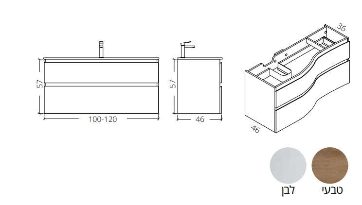ארון תלוי קולין COLLIN ס"מ 120 עם משטח כיור זכוכית